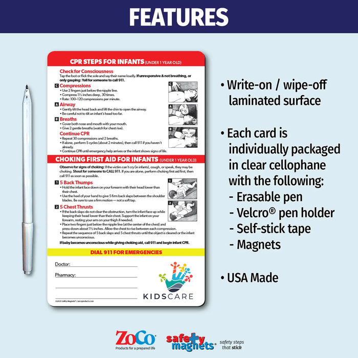 Infant CPR/Choking - Mini Quick Reference Cards w/ Magnet & Marker - 5.25" x 8.5" - (Min Qty 100)