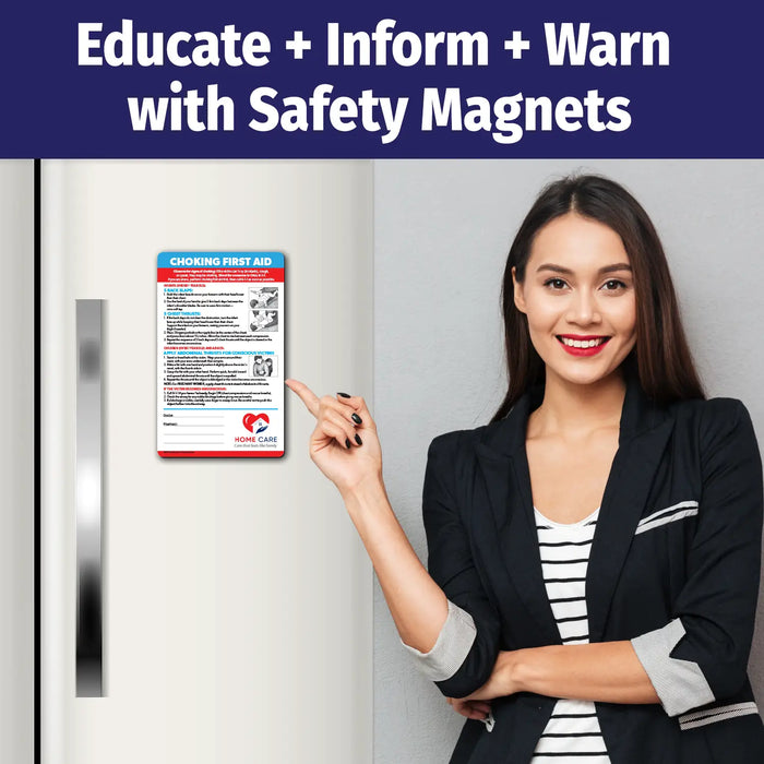 This potentially life-saving Safety Magnet shows the steps on what to do if an infant, child or adult is choking. Features a handy area for important phone numbers.